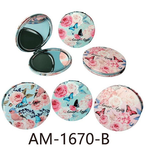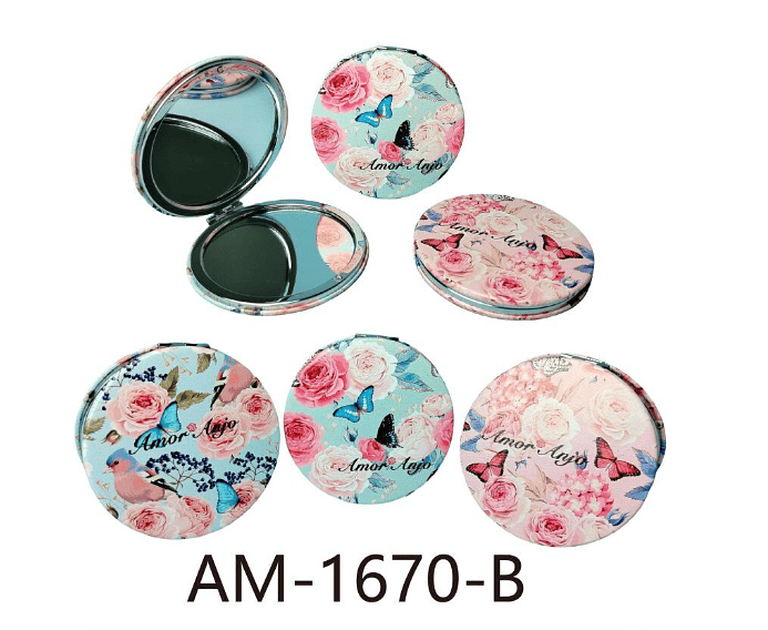 Espelho de Bolsa Duplo Redondo Flores Amor Anjo