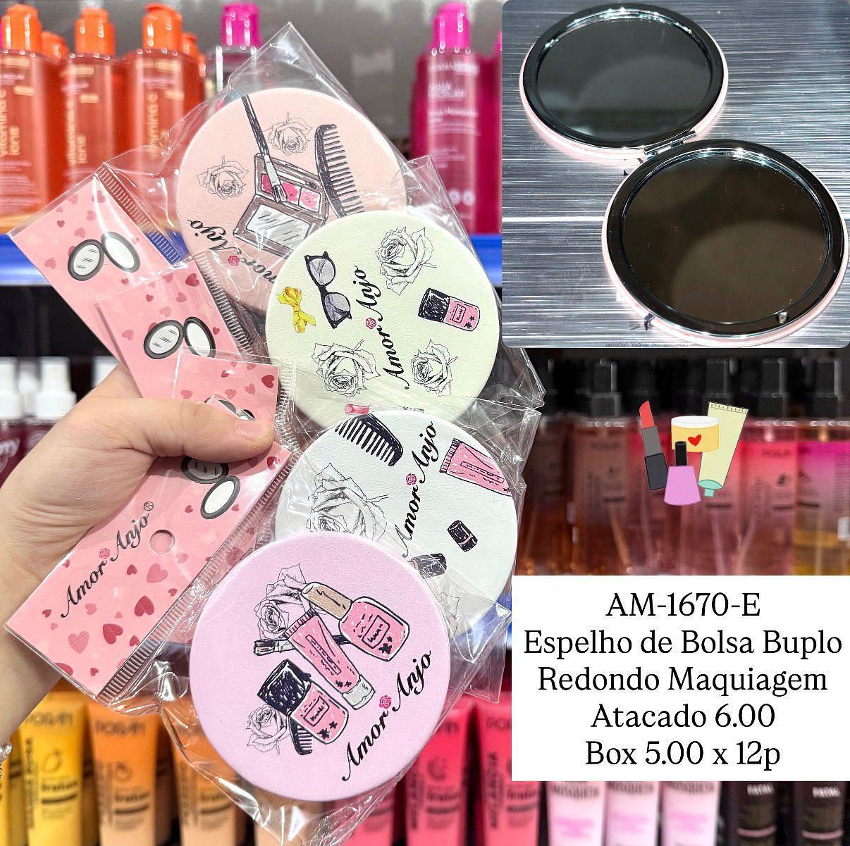 Espelho de Bolsa Duplo Redondo Maquiagens Amor Anjo