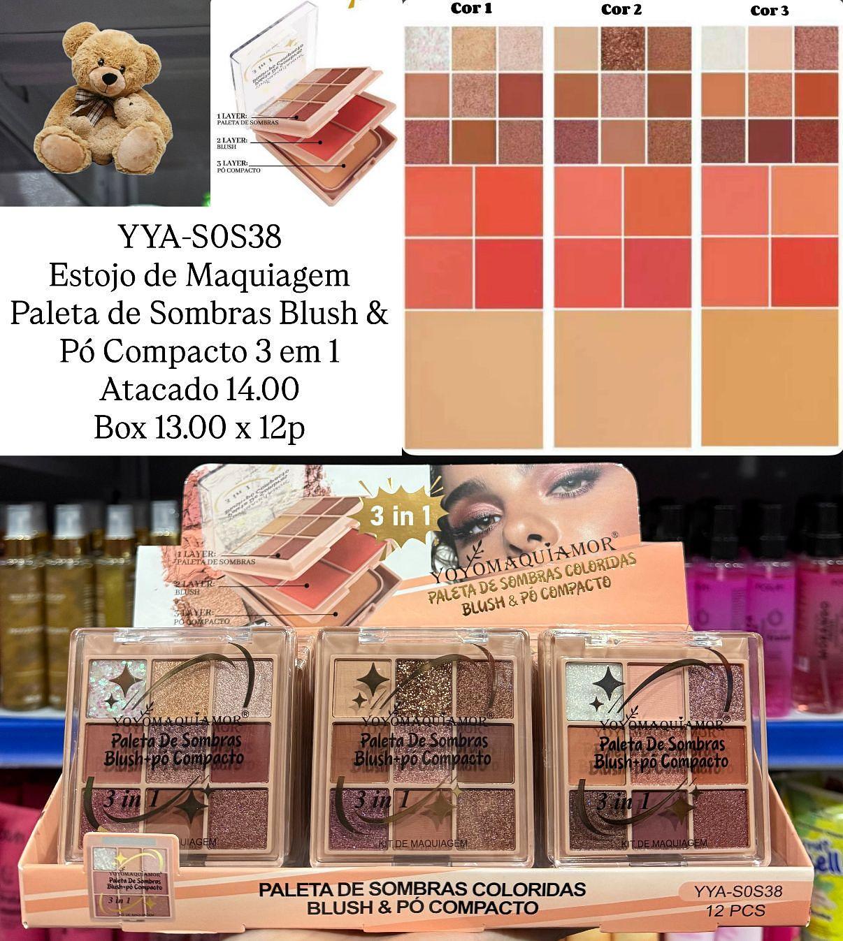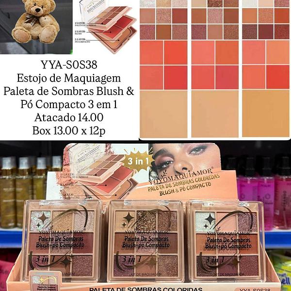 Estojo de Maquiagem Sombra Blush & Pó Compacto 3 em 1 Yoyo Maquiamor